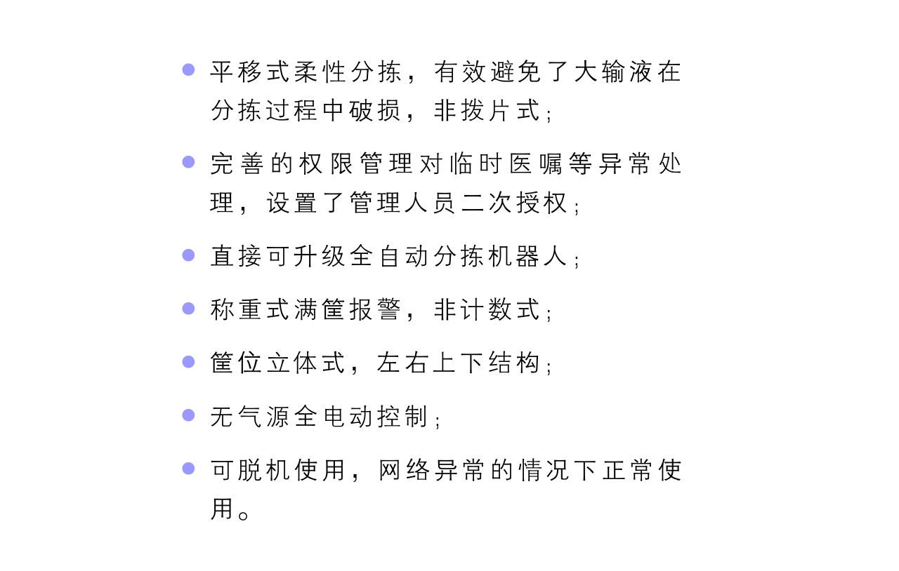 医院静脉用药调配中心自动化解决方案以智能分拣机、智能贴标机等设备为核心,结合相应管理软件,从存储、摆药、复核、分拣等各个环节保障输液药品的快速、准确调配和发放,实现PIVAS工作的自动化,信息化和智能化管理。
